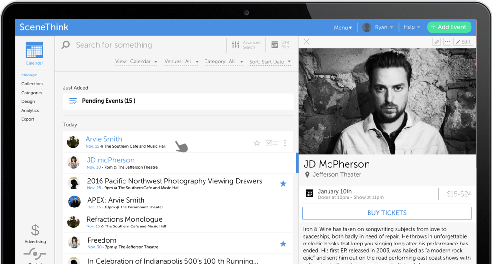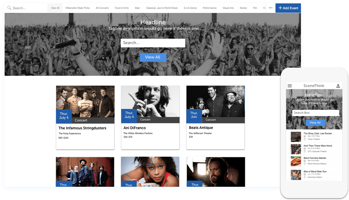 Whether through user submissions, external data feeds or directly entered events SceneThink will help you manage, curate and edit events quickly across all your channels.